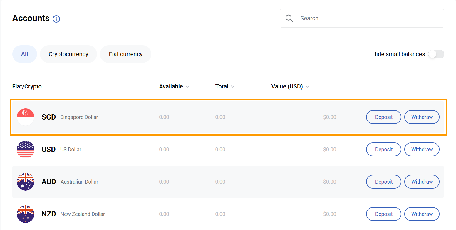 3. Look for SGD, then click ‘Deposit.’