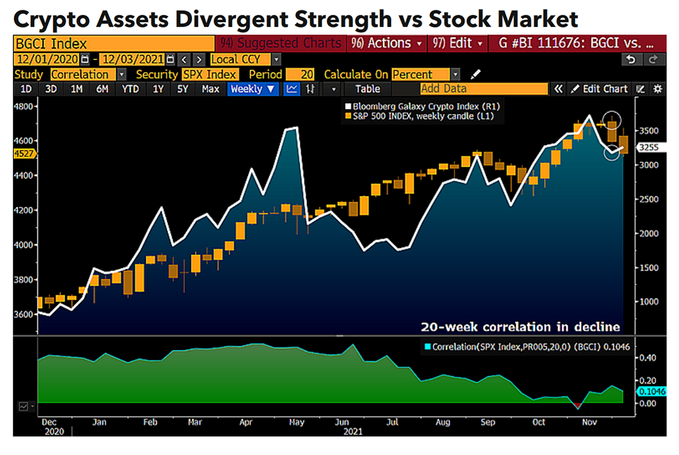 A survey of 500 institutional investors from 29 countries by Natixis Investment Managers found that more than 50% expect crypto markets to correct in 2022. In fact they’re tipping corrections across the board with 45% predicting one for interest-rate-sensitive bonds, stocks (41%) and technology (39%). “On the upside: “Four in ten consider crypto to be a legitimate investment option, and of the 28% who invest in crypto, 90% say they will maintain (62%) or increase (28%) their allocation.”