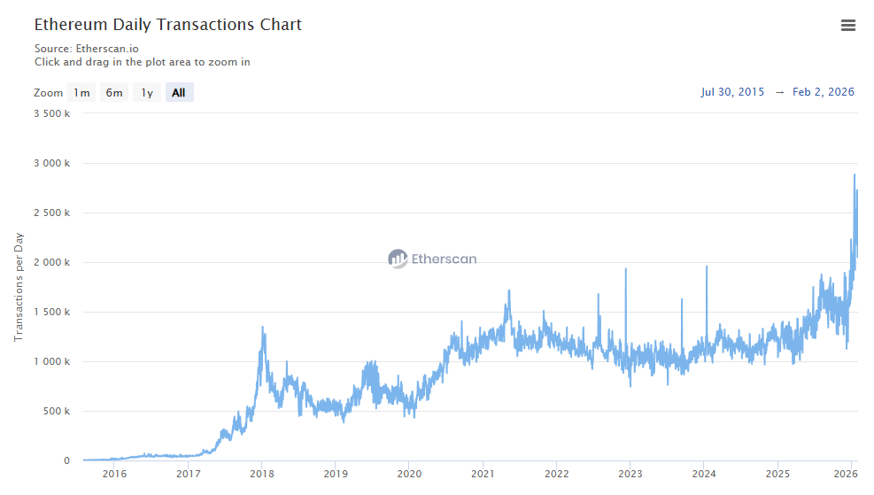 The Ethereum ecosystem hit an astonishing new all-time high of 75,862 TPS. MegaETH was running at 41,335 TPS, and Lighter at 34,034 TPS. Until recently, the more traditional L2s were running around 100 TPS, but Arbitrum this week peaked at 6,573 TPS, and Base hit 5,073 TPS. Even the Ethereum L1 reached 84 TPS in the past 24 hours. Solana peaked at 4,336 TPS during the market crash. In other Ethereum news, 75,100 ETH that have sat untouched since the DAO hack in 2016 will be staked, with the resulting yield going to Ethereum security-related projects (e.g., audits, incident response, wallet security, etc.).