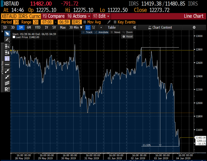 Independent Reserve Bitcoin/AUD chart on Bloomberg